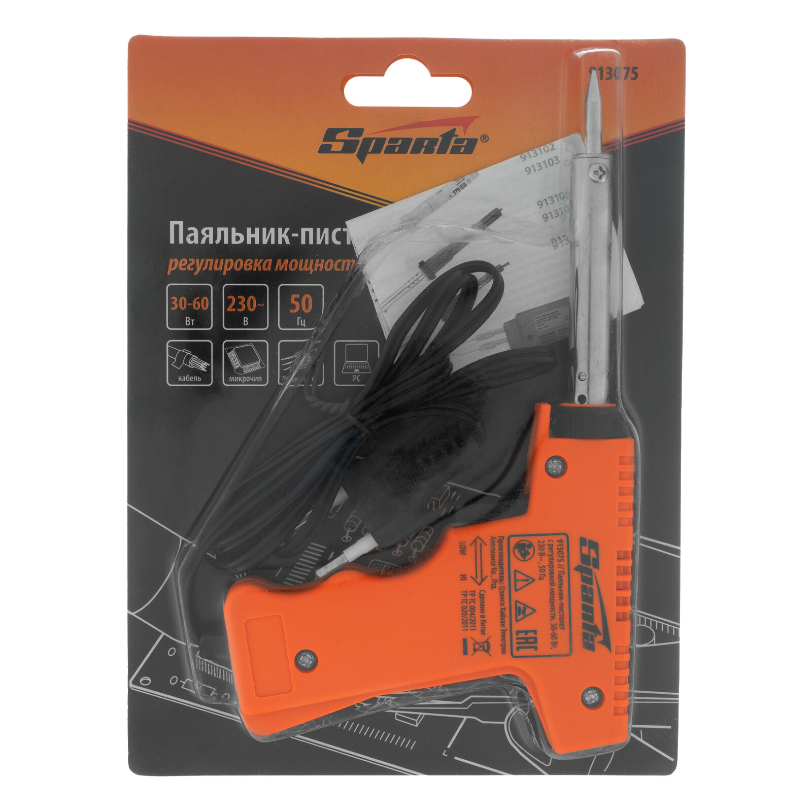 913075 SPARTA Паяльник-пистолет с регулировкой мощности 30-60 Вт, 220 В Sparta 913075 SPARTA 913075