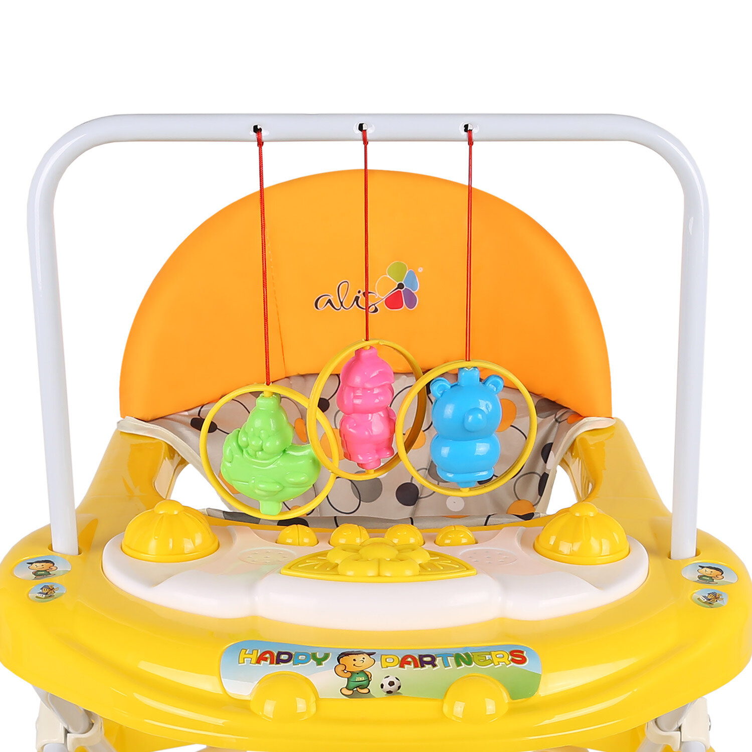 Ходунки "Подвески", 7 колес, муз. игрушки, (упак.7 шт.) (Alis) (желтый)