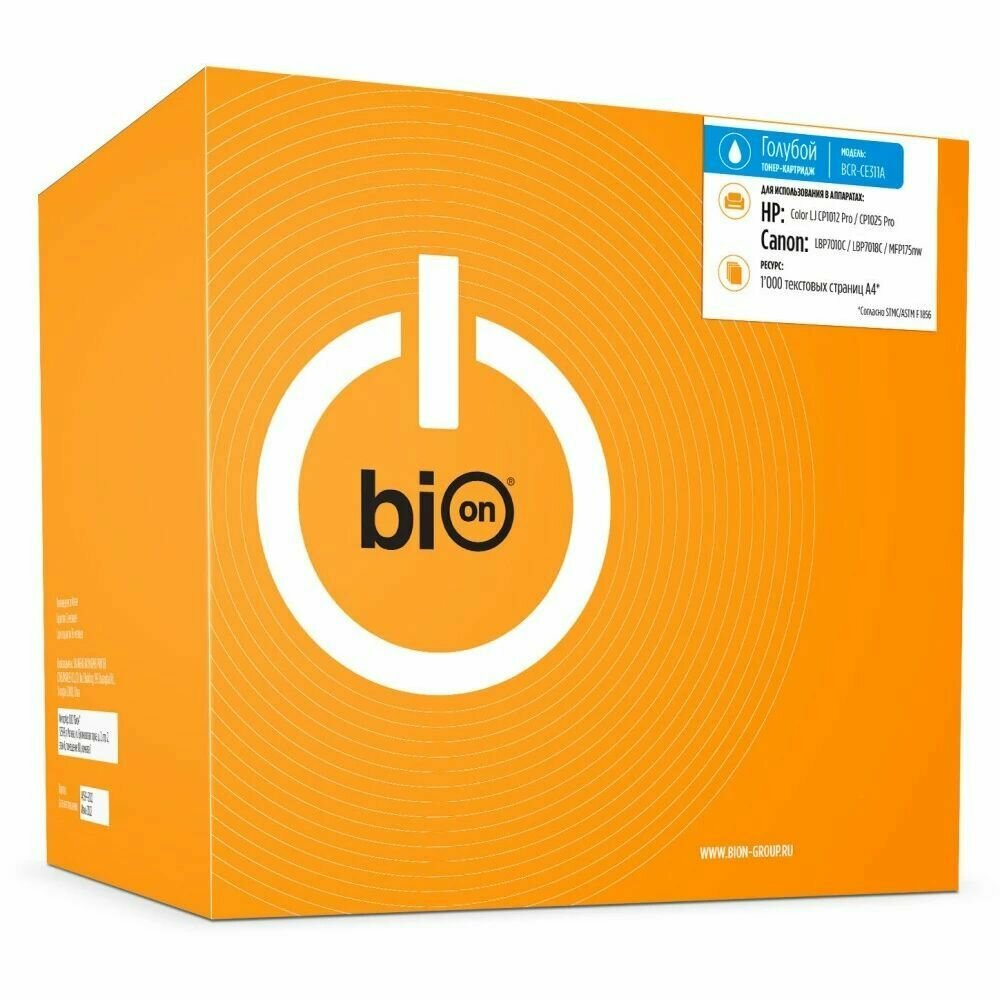 Bion Картридж BCR-CE311A для HP{ LaserJet CP1012 Pro/CP1025 Pro, Canon LBP7010C/LBP7018C/MFP175nw }(1000 стр.),Голубой