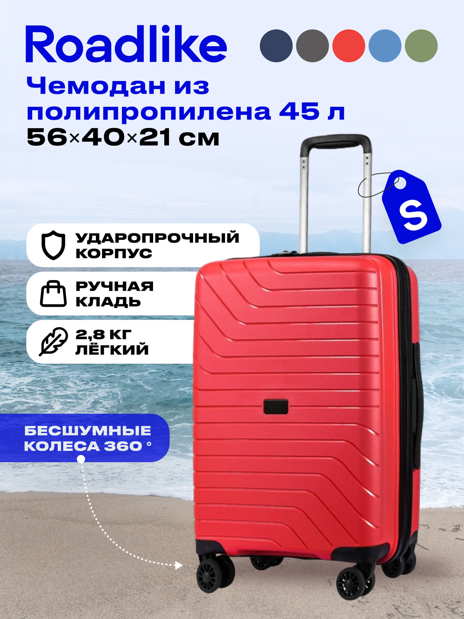Чемодан RoadLike Way S, Голубой .