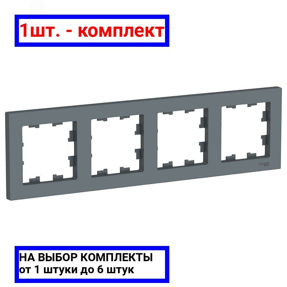 Рамка для розеток и выключателей Schneider Electric / Systeme Electric AtlasDesign на 4 поста универсальная, грифель