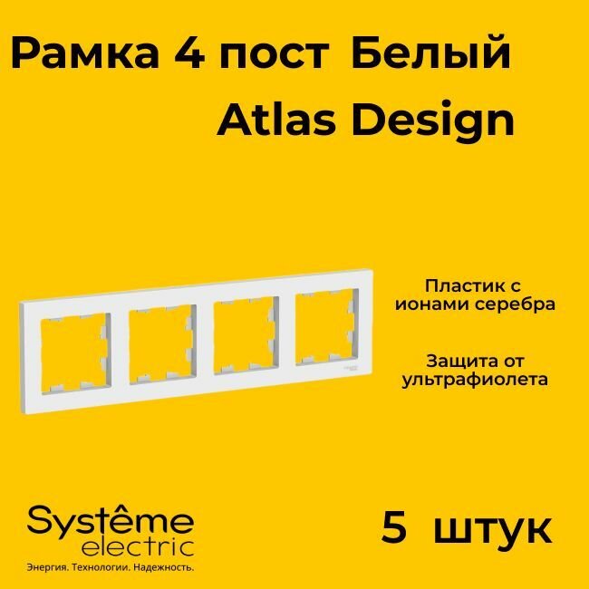 Купить Рамка четырехместная Systeme Electric Atlas Design белый ATN000104 - 5 шт.