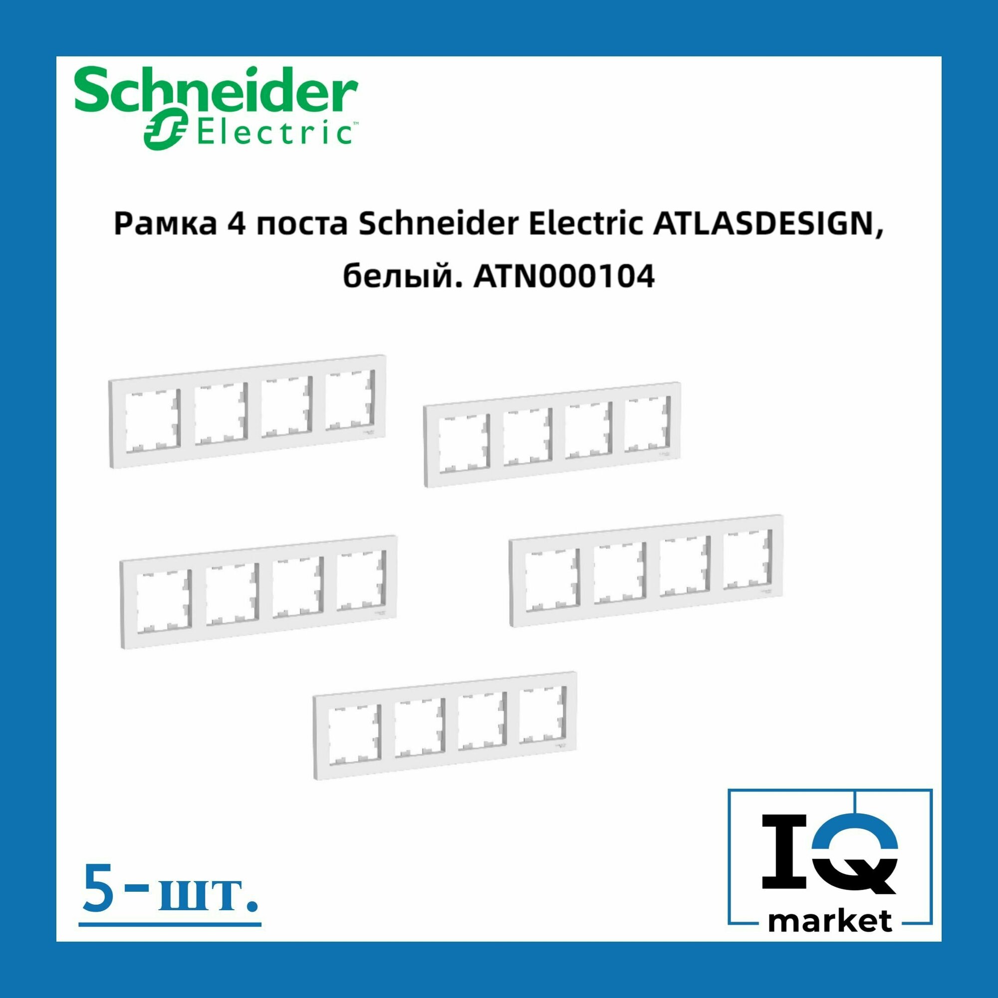Рамка 5-постовая для розеток и выключателей Белый AtlasDesign (Атлас Дизайн) Schneider Electric ATN000105 1шт