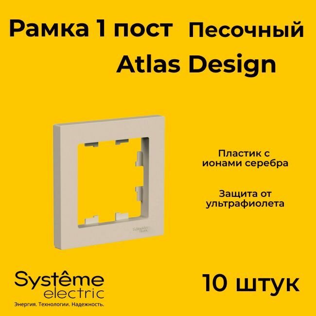 Купить Рамка 1-постовая, универсальная, Schneider Electric/Systeme Electric AtlasDesign, песочный (матовый) ATN001201(комплект 10 шт.)