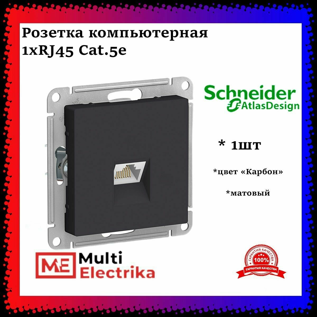 Розетка компьютерная 1xRJ45 Cat.5 ATLASDESIGN, карбон | код. ATN001083 | Schneider Electric ( 1шт. )