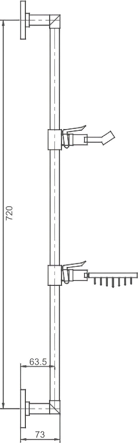 | Дополнительная информация | с мыльницей, регулируемой высотой и углом наклона, 720 мм, без лейки и шланга хром. |