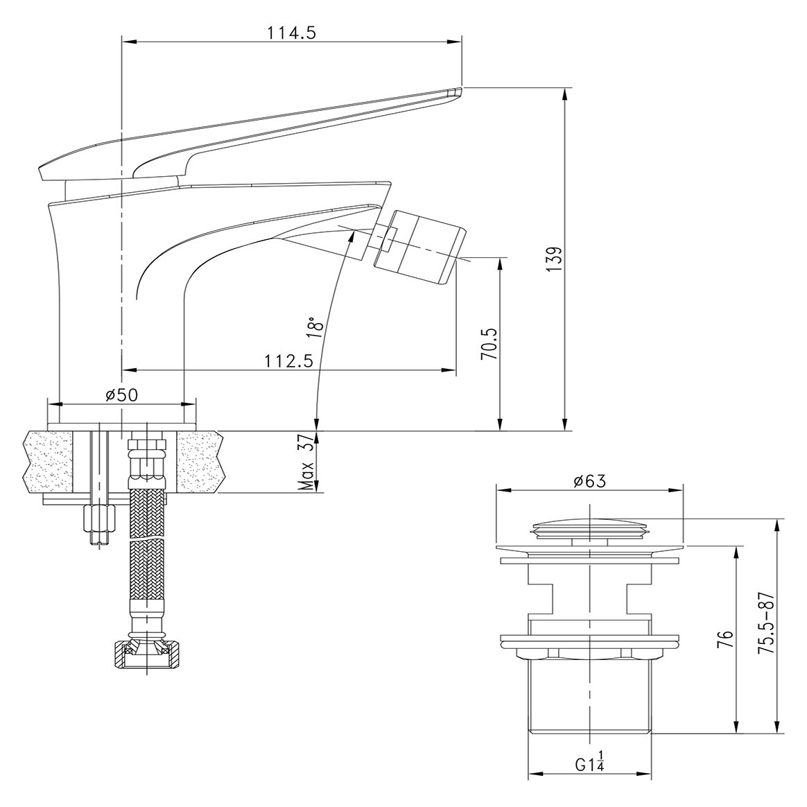 | Длина излива | 112 мм |