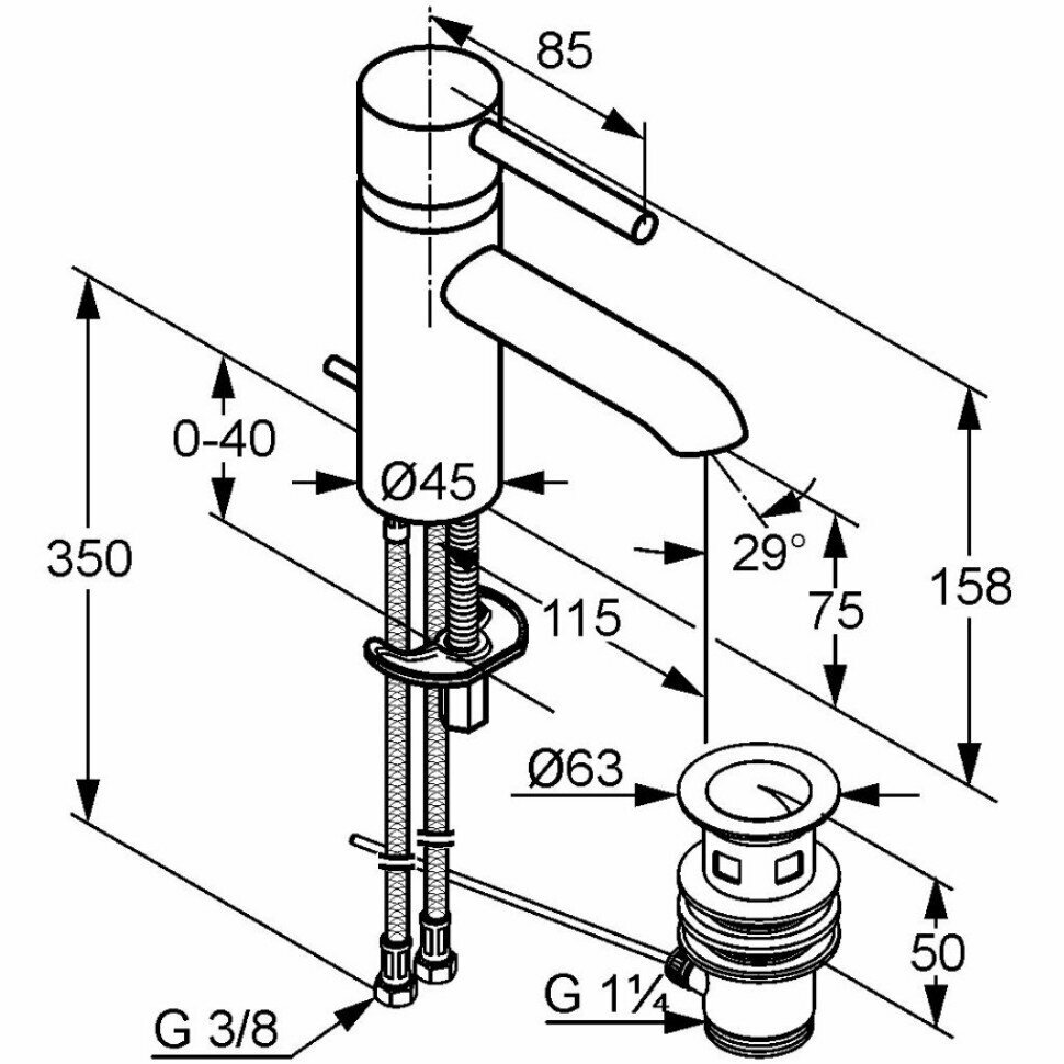 Смеситель для раковины Kludi Bozz 75 с донным клапаном, хром 382910576