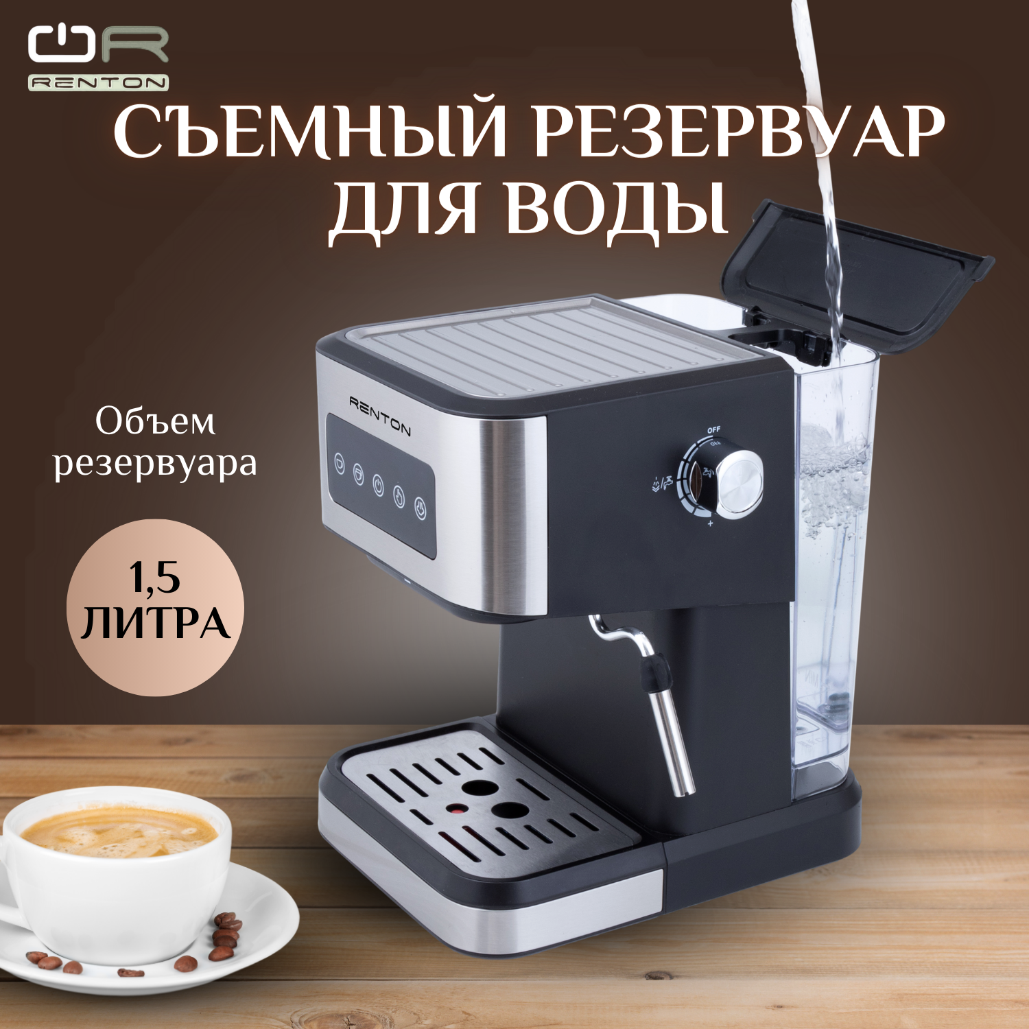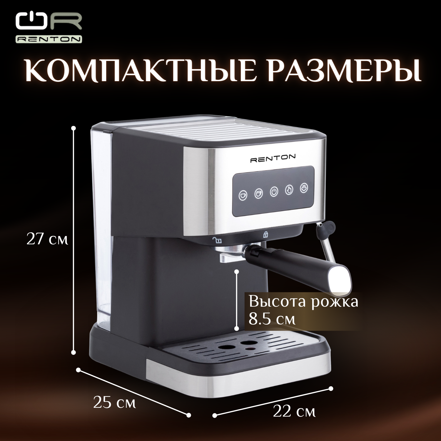 Кофеварка Renton EX-750, 15 Бар, Капучинатор, Автоматическая, Рожковая, Чёрный/Серебристый