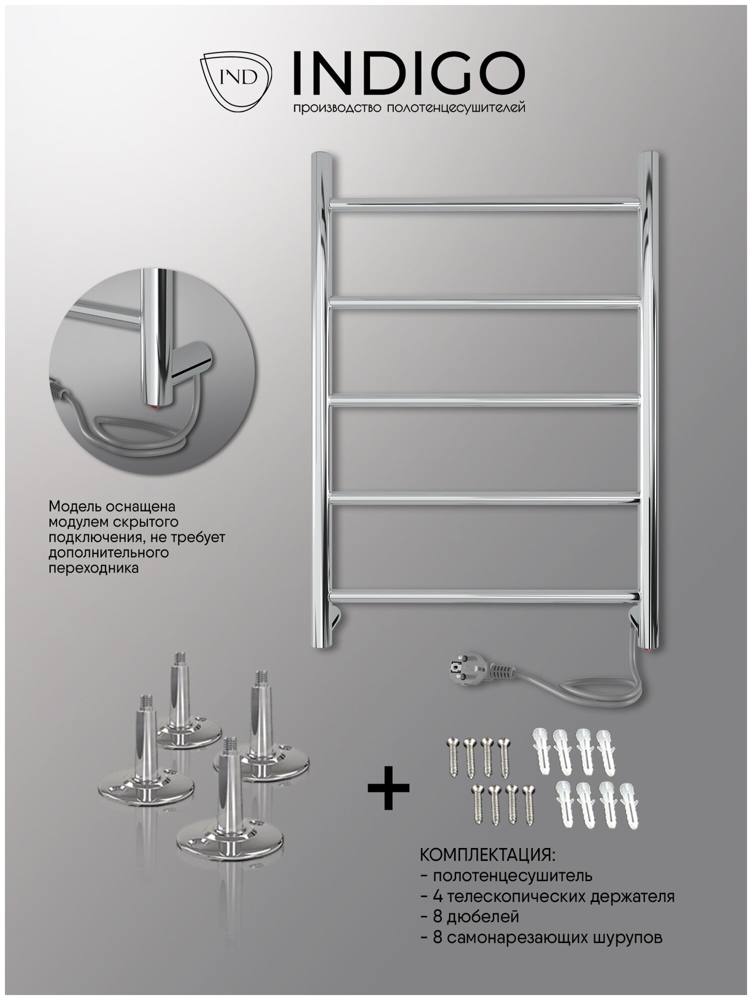 Indigo Электрический полотенцесушитель INDIGO LCLE60-40R Line б/п (electro) 60/40 (скр. монтаж, полированная), серебристый
