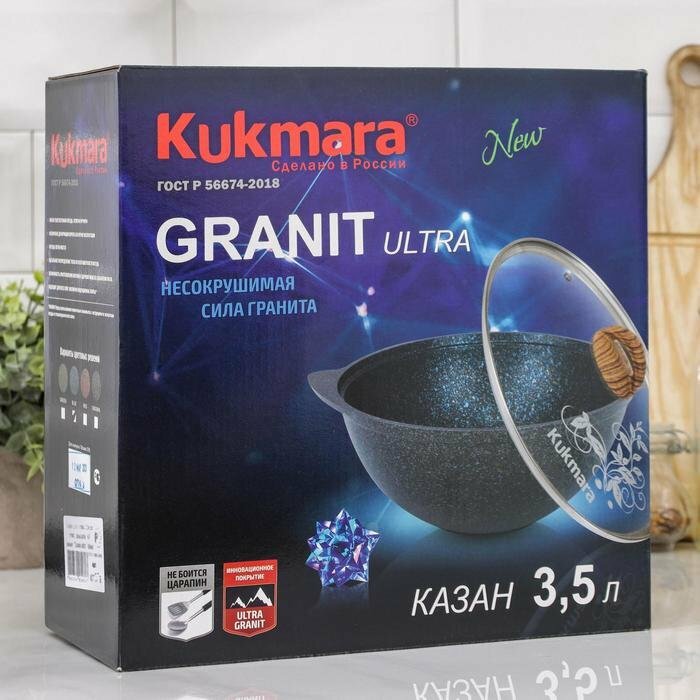 KUKMARA Казан для плова Grаnit ultrа, 3,5 л, стеклянная крышка, антипригарное покрытие, цвет синий