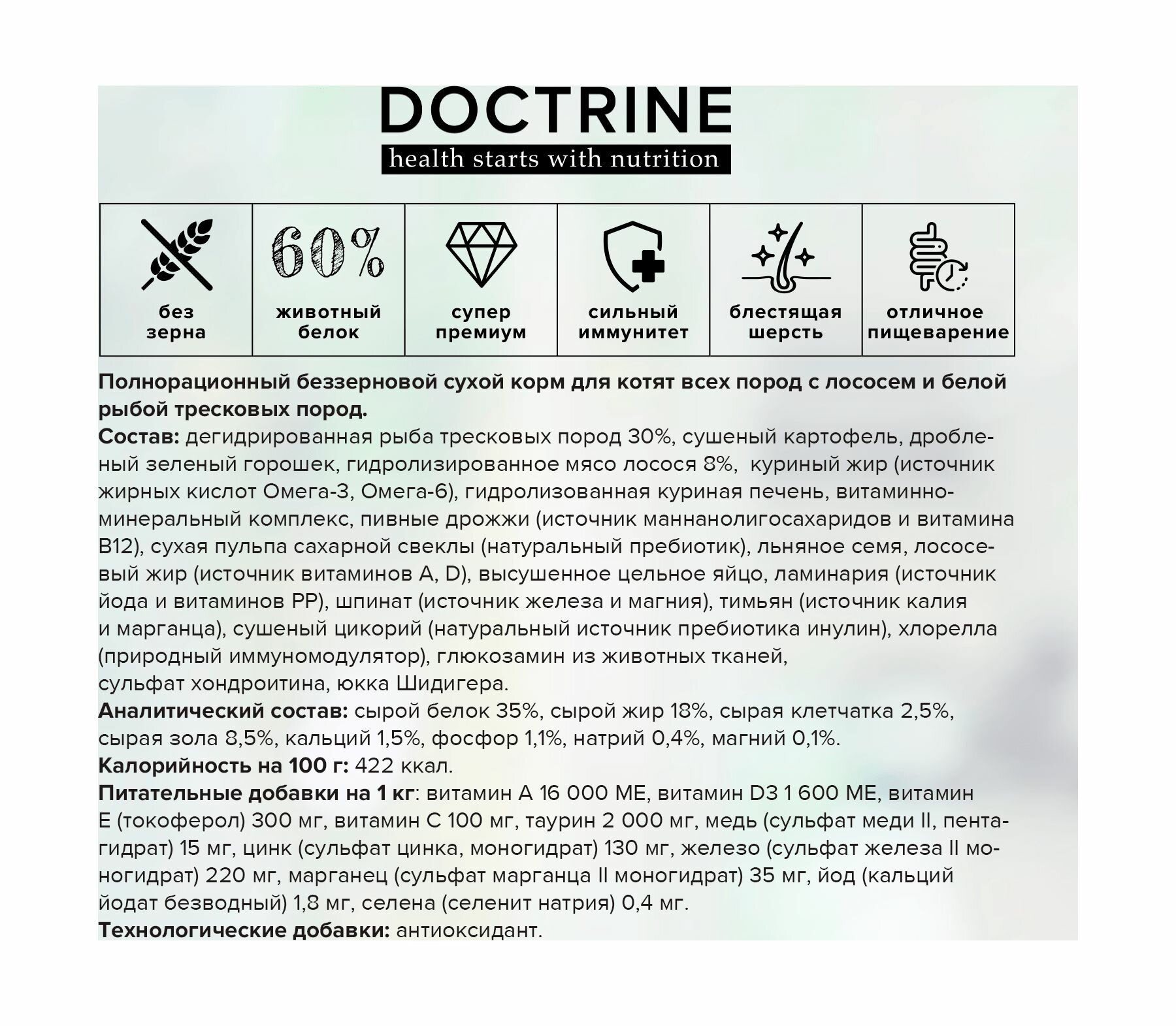 Сухой корм для котят Беззерновой DOCTRINE с лососем и белой рыбой 3кг / доктрин, доктрина