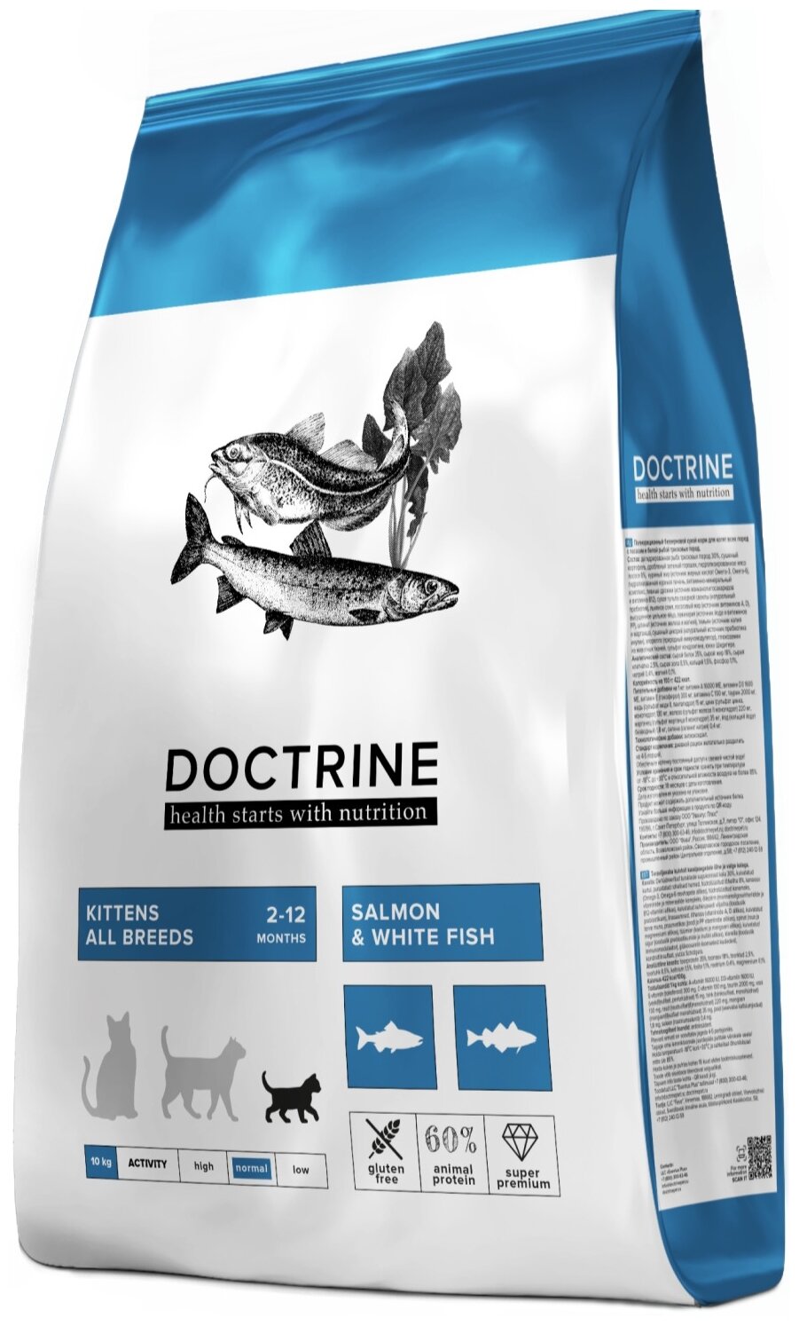 Сухой корм для котят DOCTRINE, лосось и белая рыба, 10кг