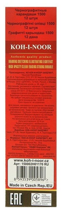 Карандаш чернографитный KOH-I-NOOR 1500/2H б/ласт, Чехия (12 шт.) интересное:
