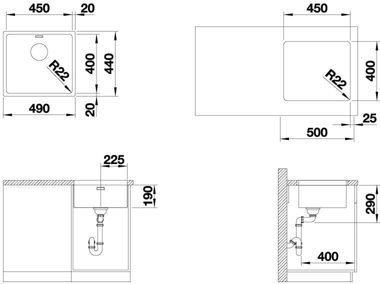 Кухонная мойка Blanco ANDANO 450-U нержавеющая сталь 522963