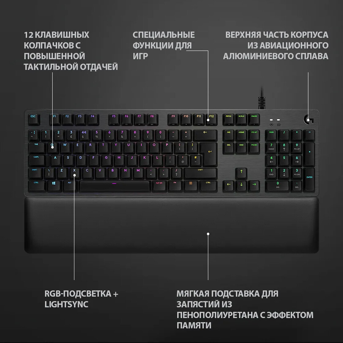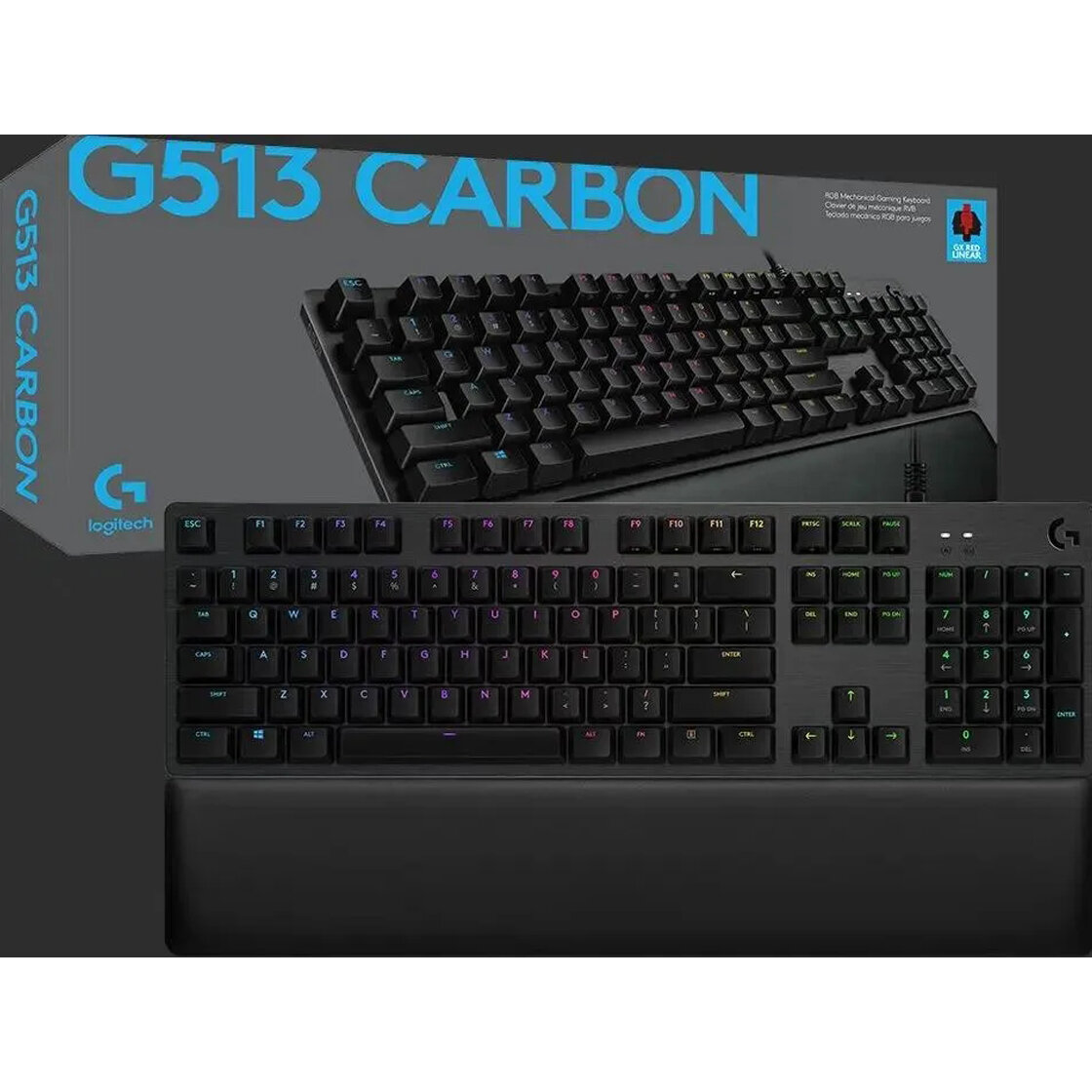 Logitech Клавиатура G513 Linear (GX Red switches), механическая, c подставкой для запястий - CARBON - RUS - USB