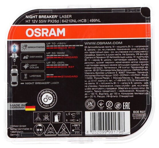 OSRAM 64210NL2(EURO) Лампа 12V H7 55W PX26d +150% 3750K бокс (2шт.) Night Breaker Laser OSRAM