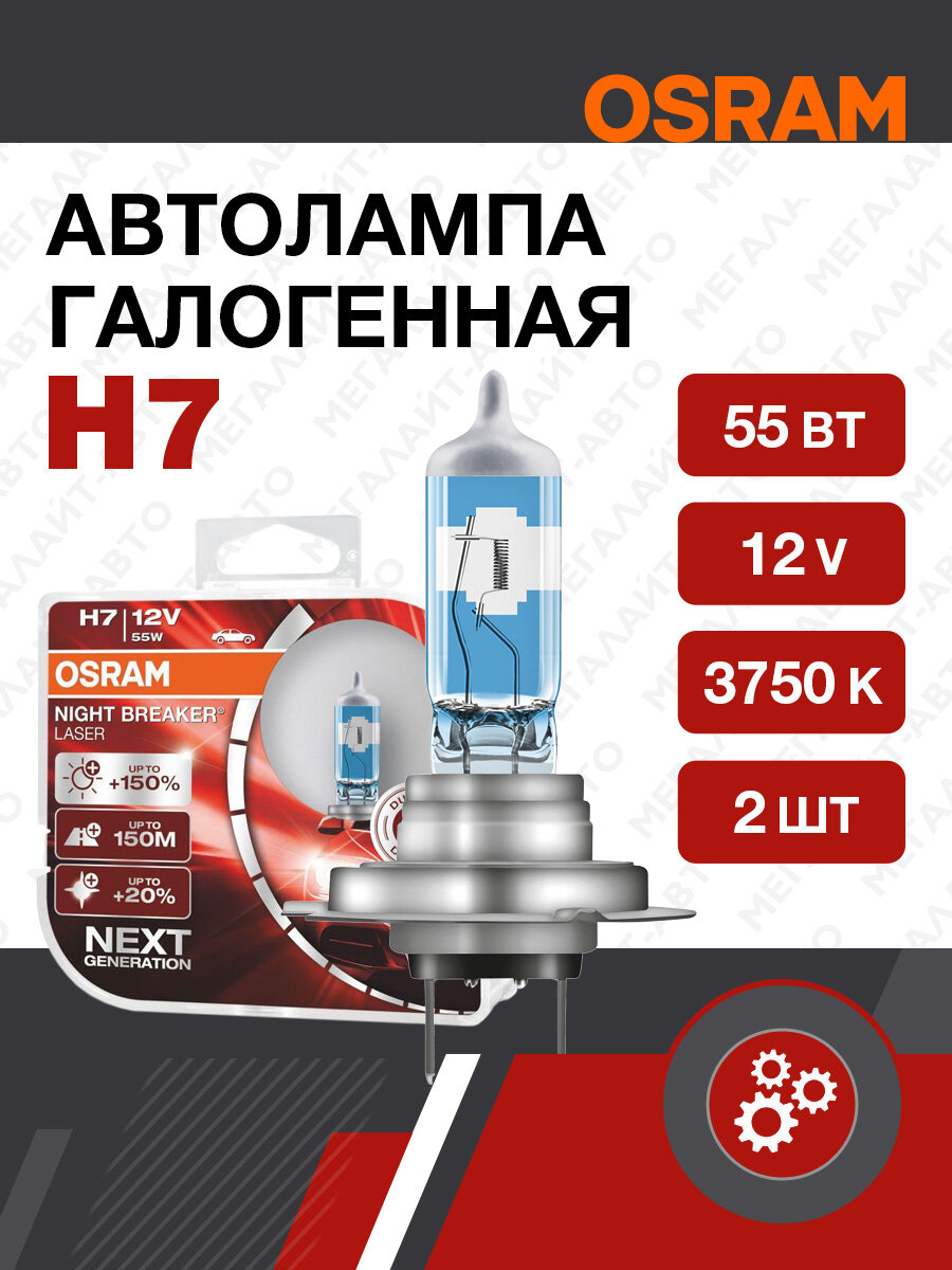 Лампа автомобильная OSRAM H7 12V 55W NIGHT BREAKER LASER +150% 64210NL-HCB (2шт)