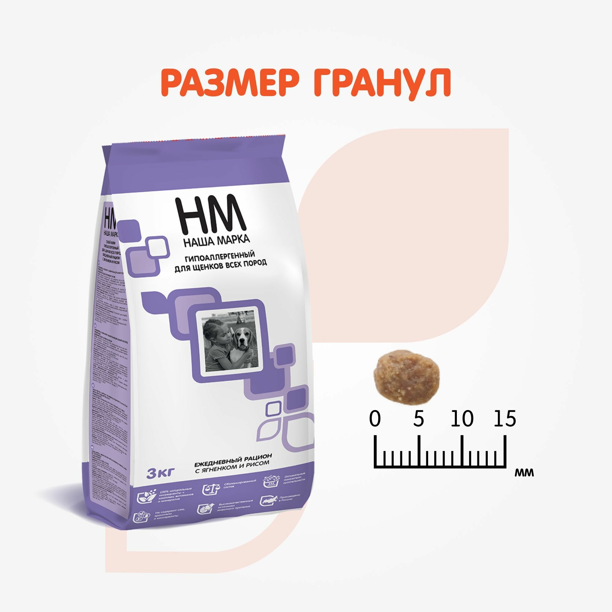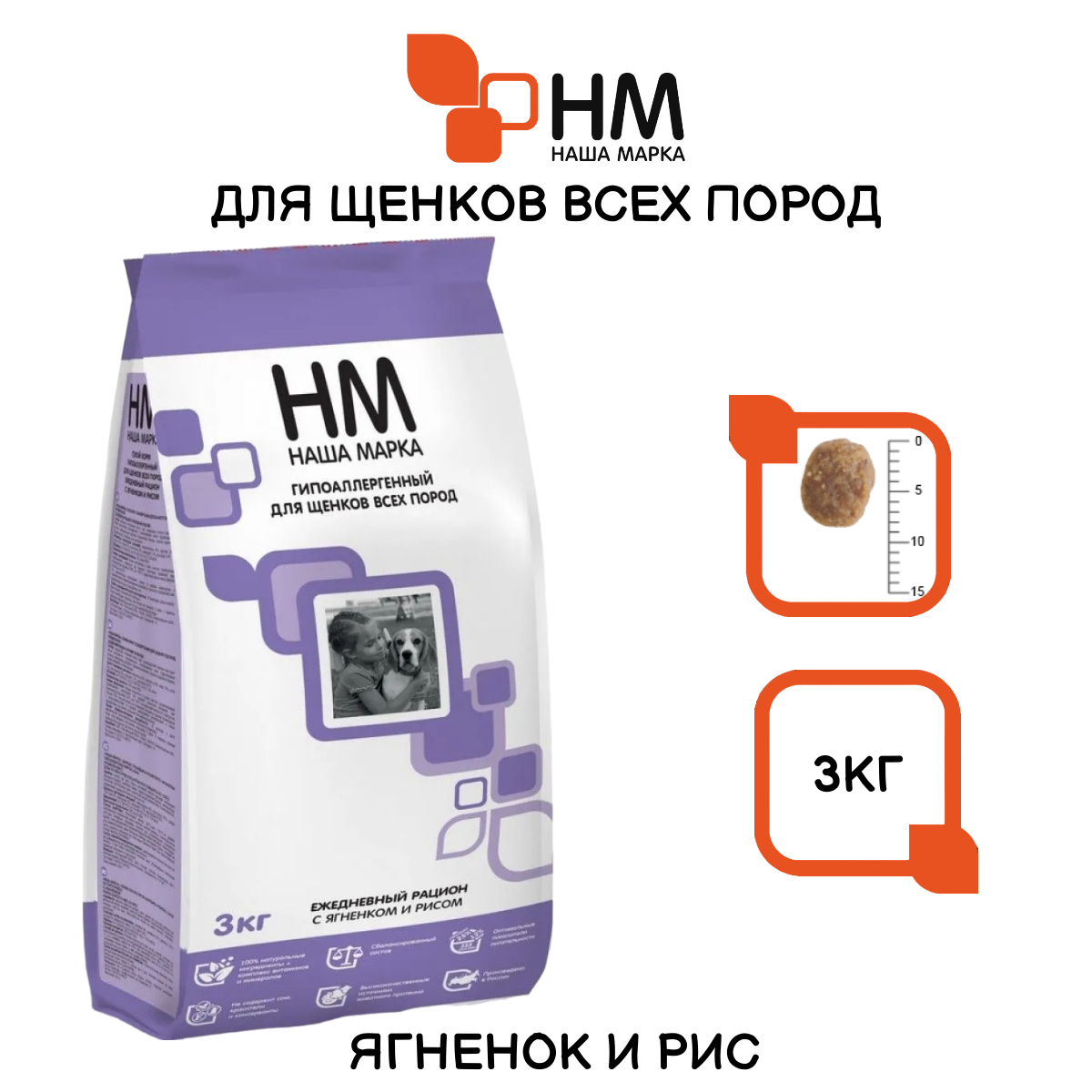 Сухой полнорационный корм "Наша Марка", Гипоаллергенный, для щенков всех пород, с ягненком и рисом, 3 кг
