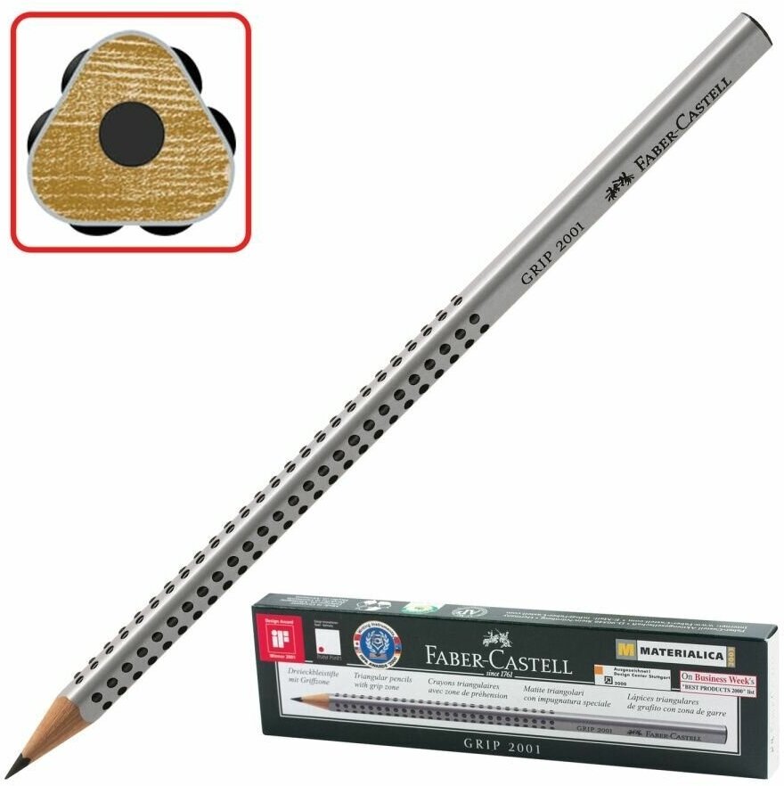 Комплект 12 шт, Карандаш ч/г Faber-Castell "Grip 2001" 2B, трехгранный, заточен. интересное: