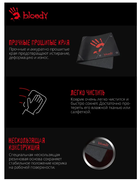 СохранитьКоврик для мыши A4Tech Bloody BP-50L Большой черный/рисунок 750x300x3мм интересное: