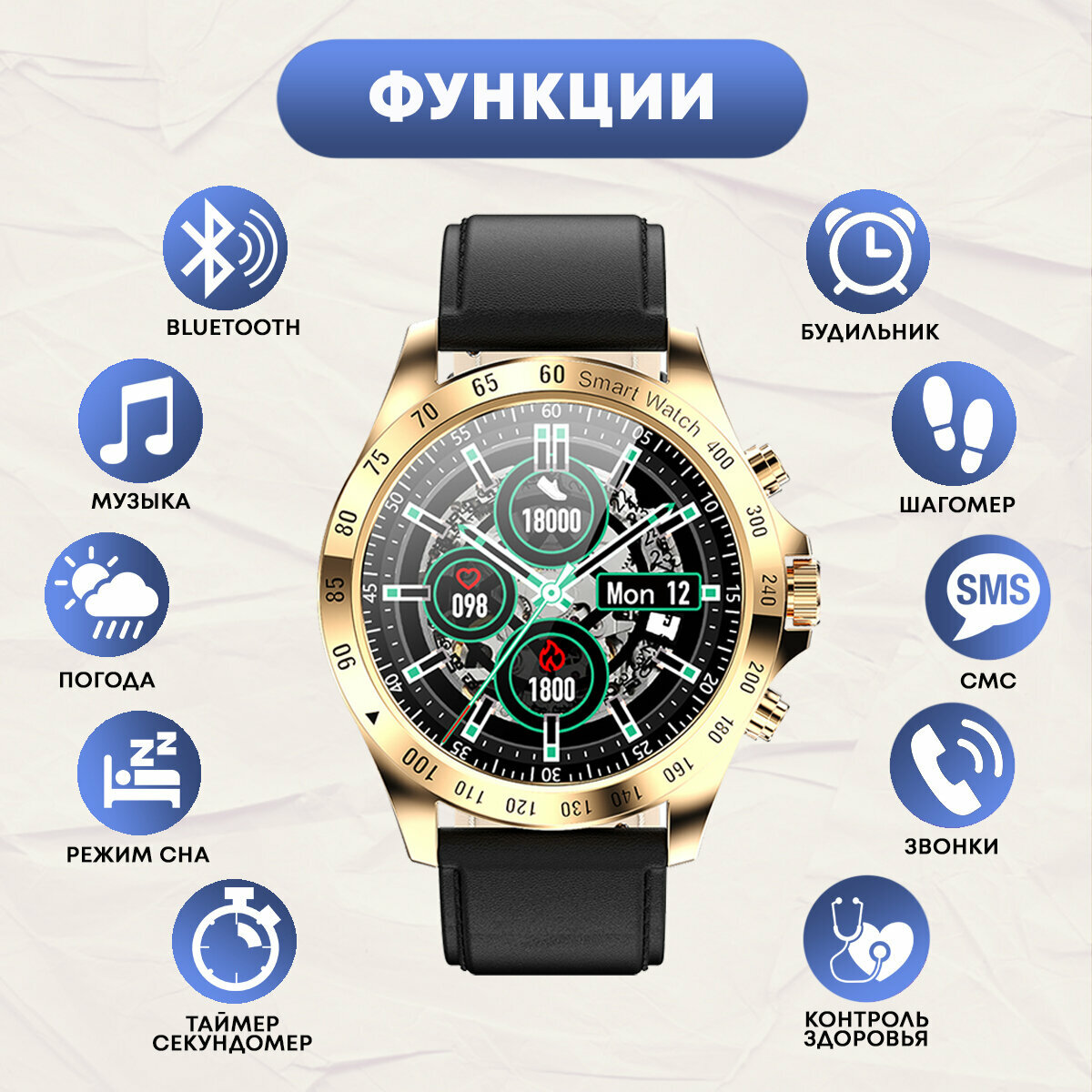 Смарт часы KingWear LW09 / Умные часы мужские / Smart Watch Bluetooth / Классические часы золотистый