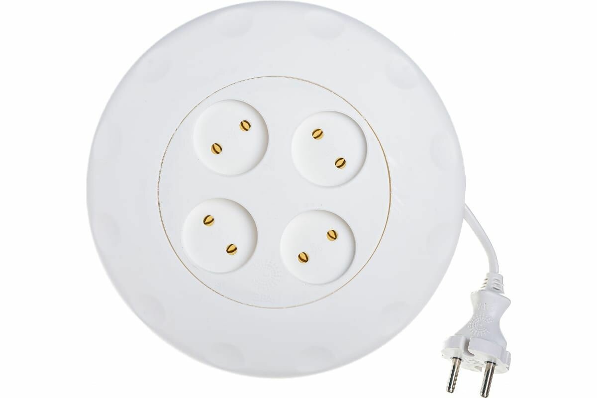 ЭРА Б0019041 Удлинитель-рулетка UR-4-7m-W Calypso без заземления белый 4 гнезда 7 м полипропилен, 2 .