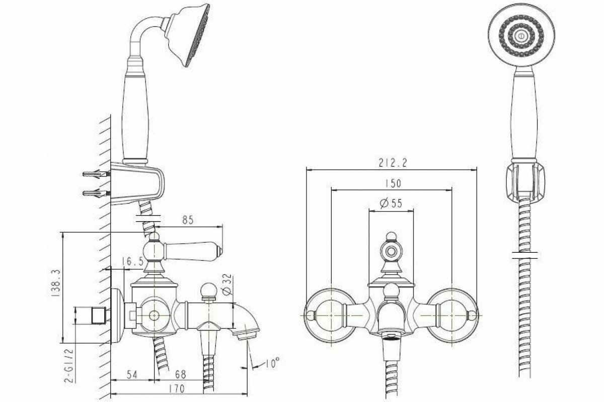 | Комплектация | Смеситель / аэратор / душевой шланг / настенный держатель / душевая лейка / дивертор / накладки / эксцентрики / крепления / инструкция |