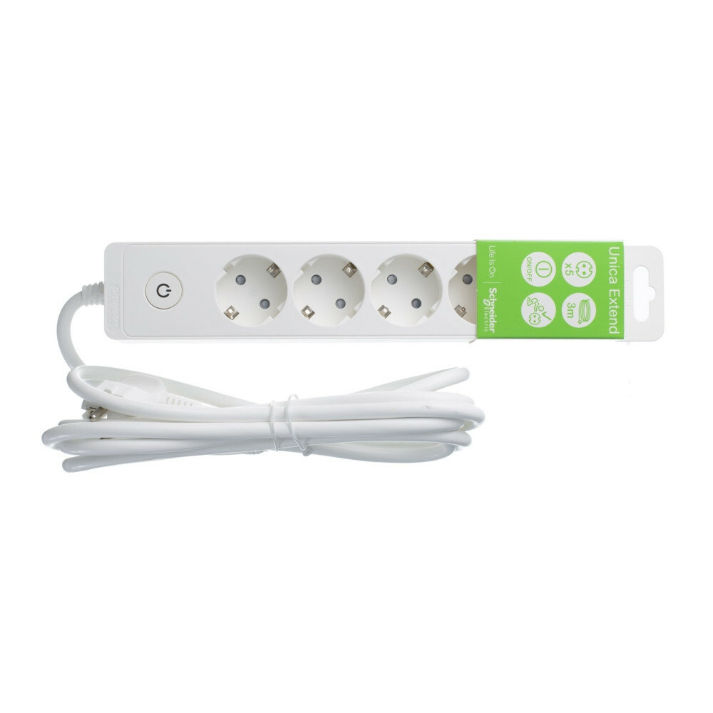 SE Unica Extend Бел Удлинитель 5 розеток 2К+З, кабель 3м, Schneider Electric, арт.ST9453W
