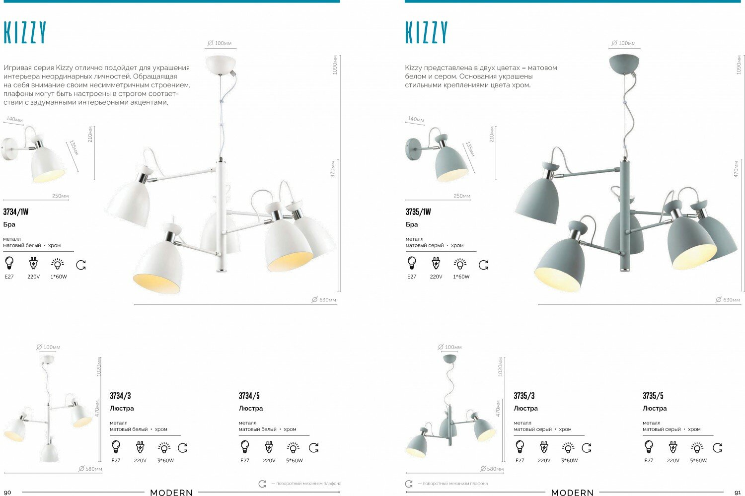 Сохранить3735/3 MODERNI LN19 155 серый Люстра E27 3*60W 220V KIZZY интересное: