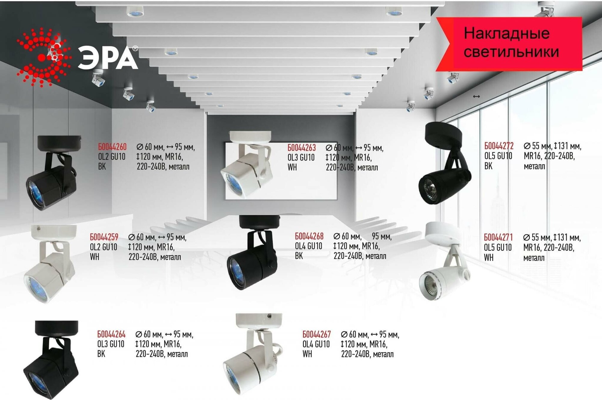 OL2 GU10 WH Светильник ЭРА Накладной, белый