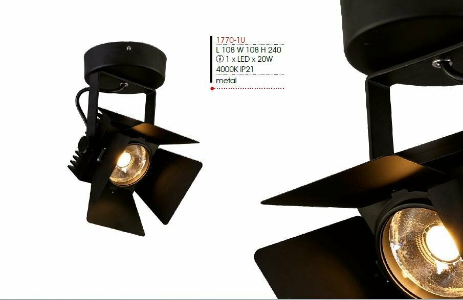 1770-1U, потолочный светильник, L120xW120xH240, 1xLEDx20W, AC:85-265V, 1600LM, RA>80, IP21, 1600LM, 4000K