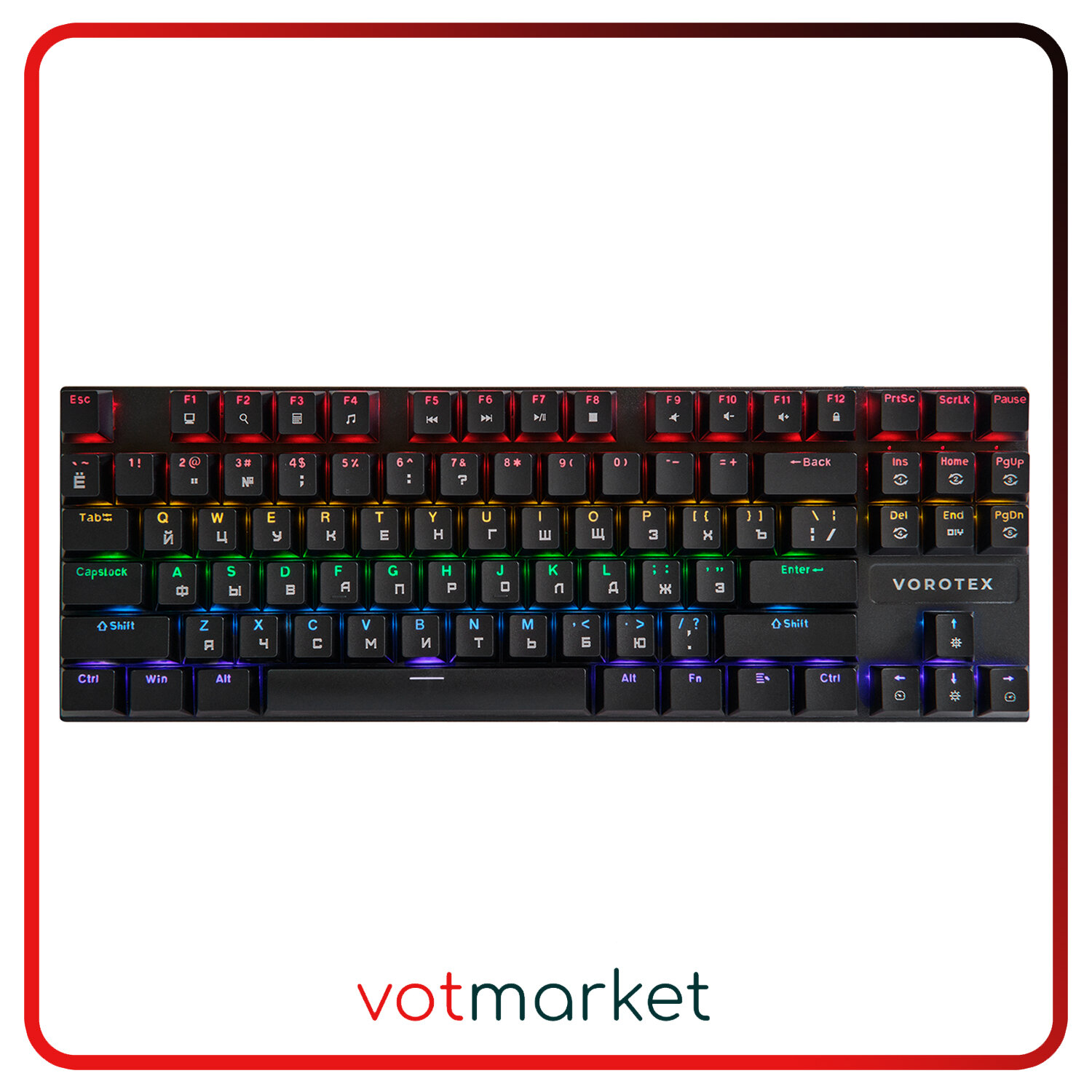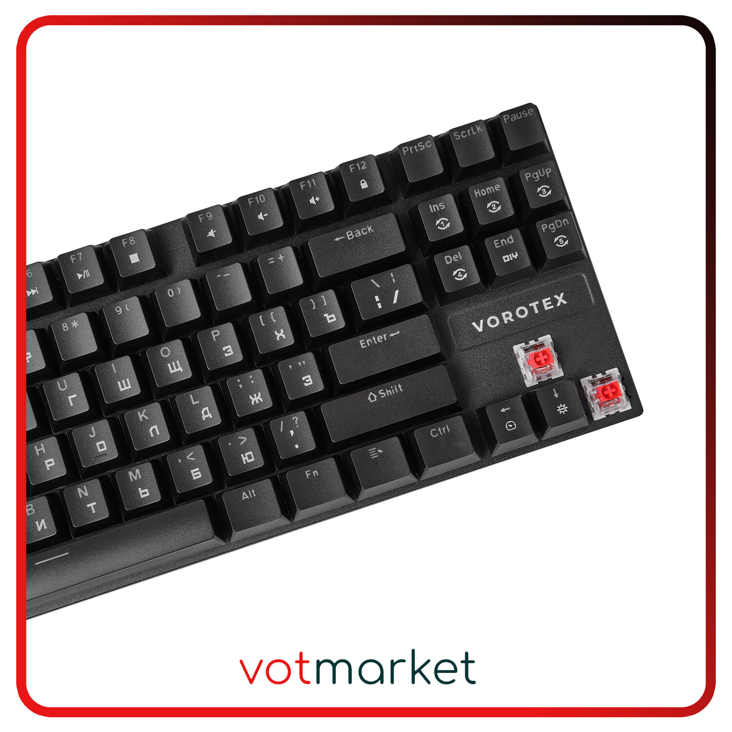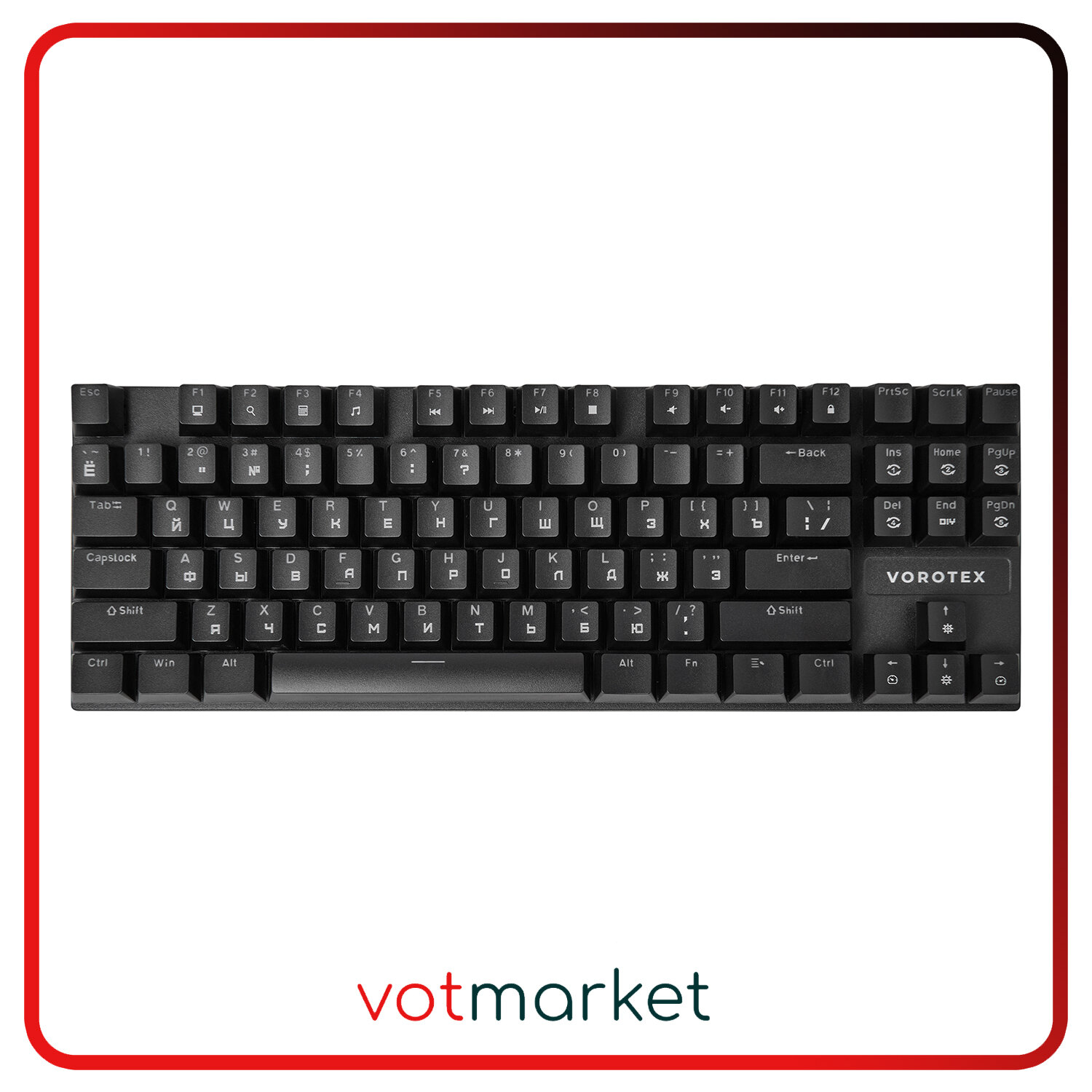 Игровая клавиатура VOROTEX K87S Red Switch, черный, кириллица+QWERTY