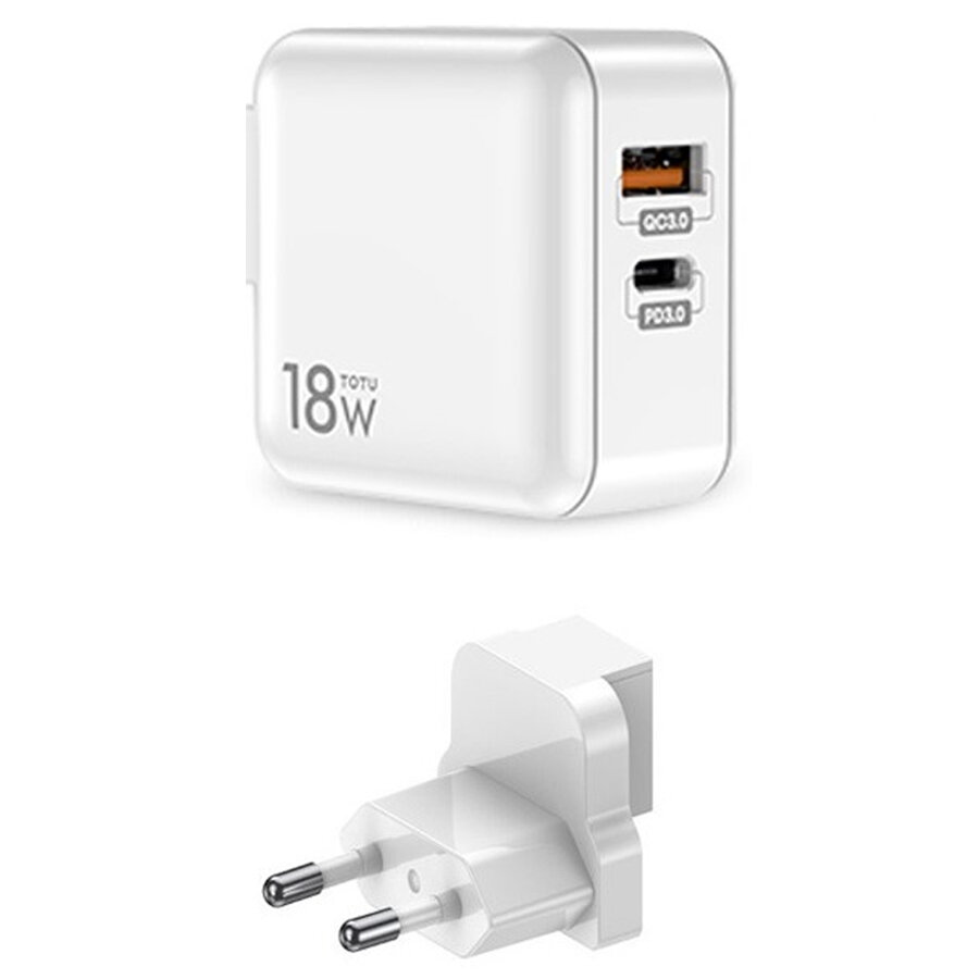 Купить Сетевое зарядное устройство TOTU HTY-0902000 1xUSB + 1xUSB-C, 0.8A, 18W, белый