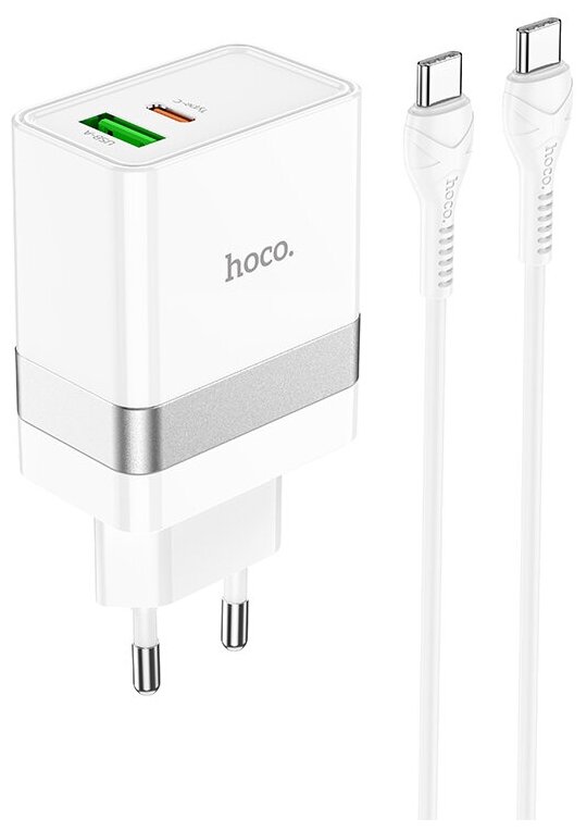 СЗУ, 1 USB 3.0 QC+1 PD 30W (N21), HOCO, Type-C to Type-C, белая