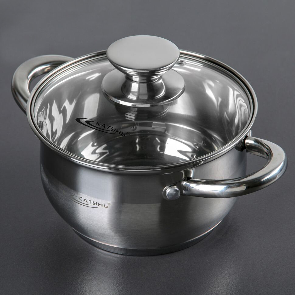 СохранитьКастрюля из нержавеющей стали Катунь Диана со стеклянной крышкой серебристая 1.8л / посуда для всех видов плит интересное: