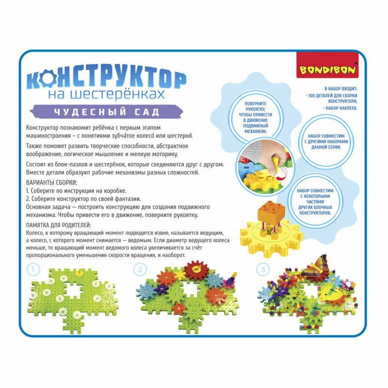 СохранитьЛогические, развивающие игры и игрушки Bondibon Конструктор на шестеренках чудесный САД 100 дет., интересное:
