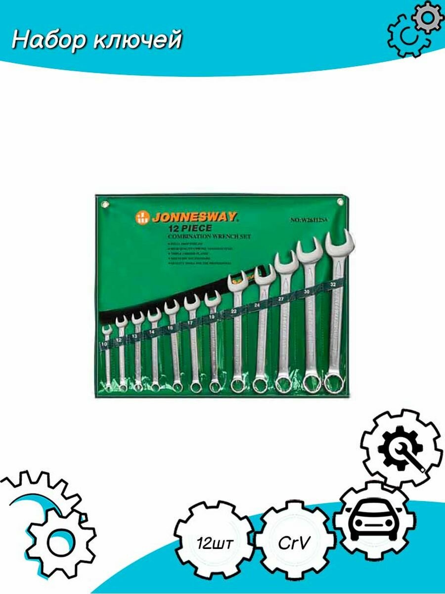 Набор комбинированных ключей 10-32мм, 12 предметов Jonnesway W26112SA