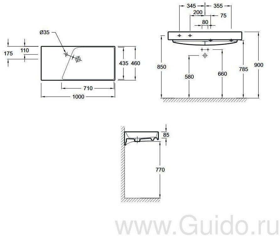| Размеченные отверстия под смеситель | отсутствуют |