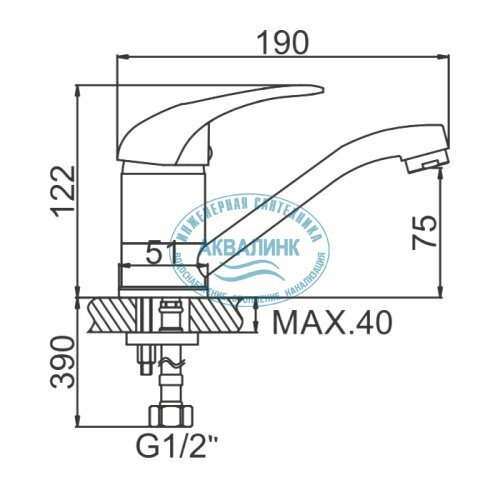 Смеситель для кухни, дл.излив, карт.40мм, шпиль Ledeme, 1/20; L4202-B