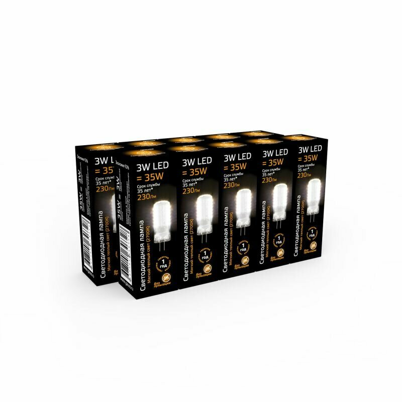 Лампа LED GAUSS G4, капсульная, 3Вт, G4, 10 шт. [107707103]