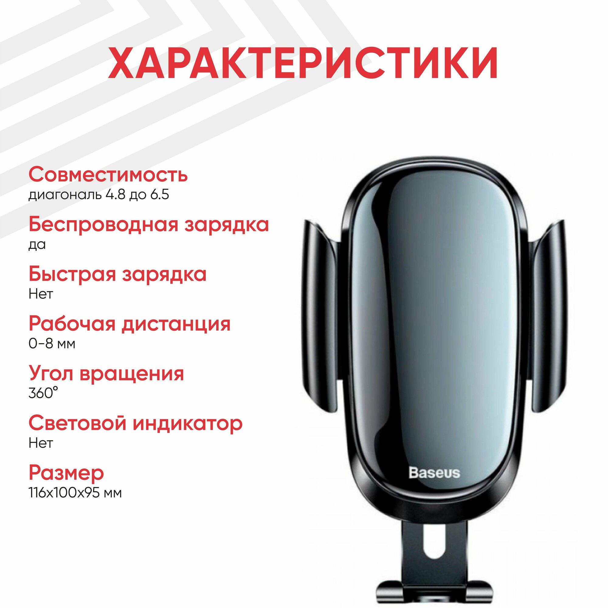| Дополнительная информация | Автомобильный держатель Baseus Future Gravity стильно и элегантно выглядит, надежно удерживает смартфон и не мешает работе с ним. Аксессуар отличается инновационной конструкцией фиксирующего крепления, специально разработанной для установки в круглый дефлектор автомобиля. Благодаря чему он прочно там держится. Гравитационный механизм позволяет вставлять телефон в держатель и вынимать из него одной рукой. |