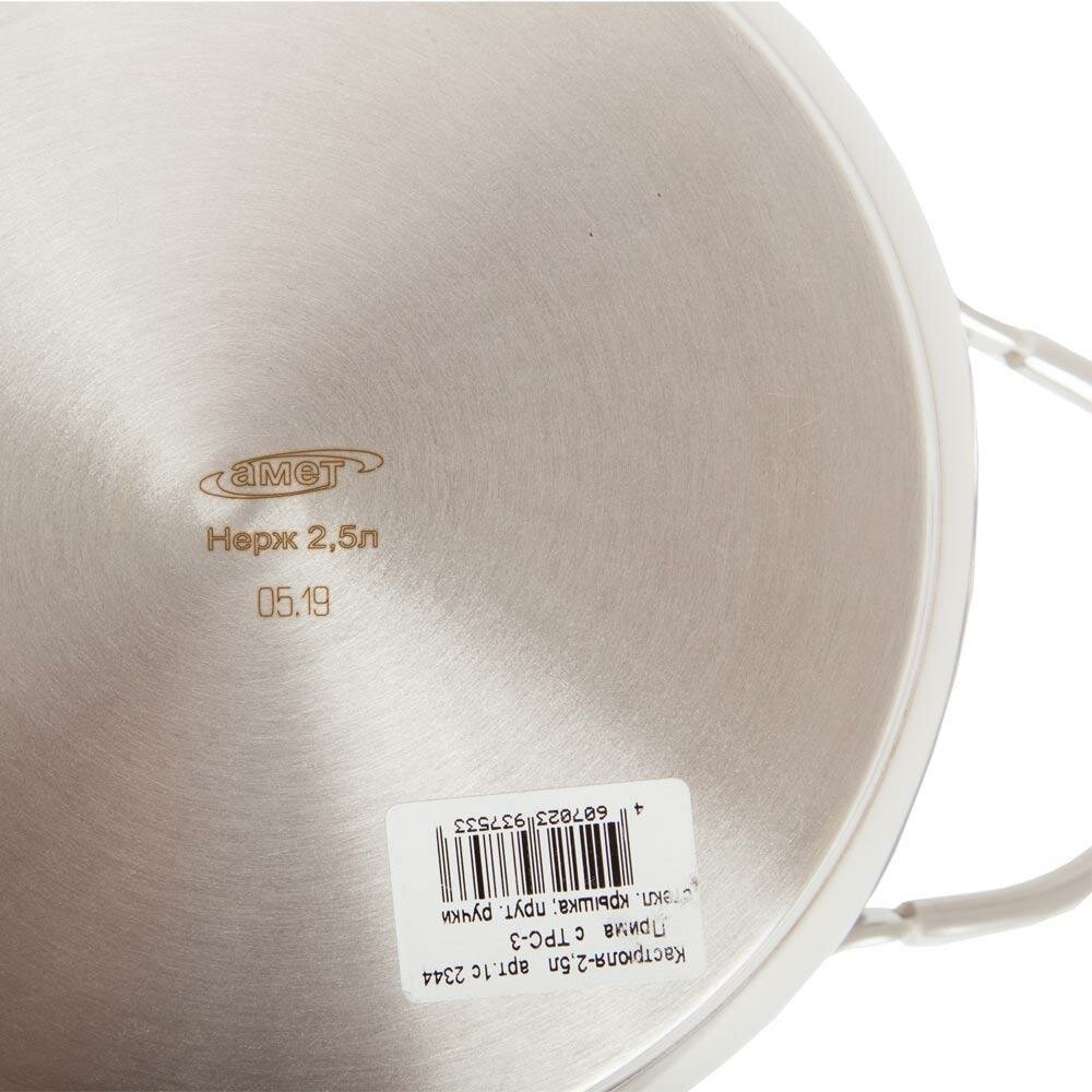 Кастрюля из нержавеющей стали Амет Классика-Прима со стеклянной крышкой 2.5л / посуда для газовых и электрических плит
