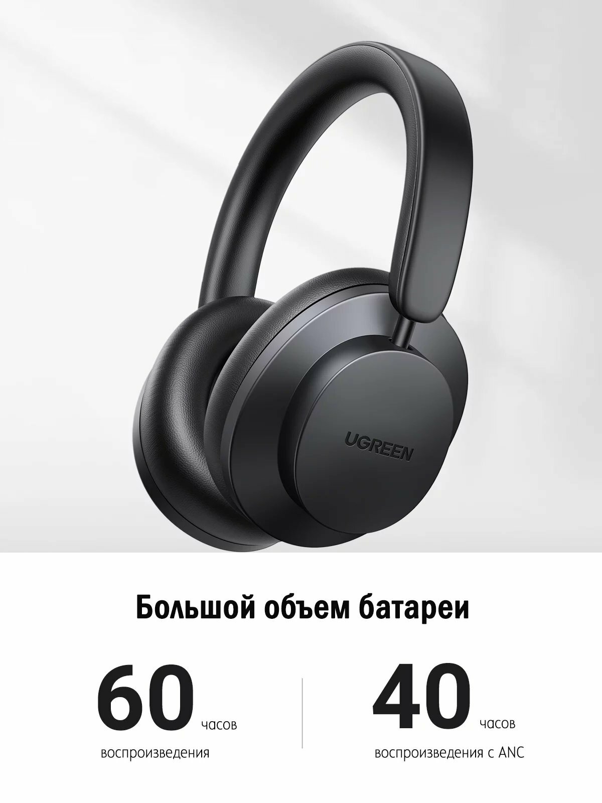 Наушники UGREEN HP106 (90422) HiTune Max3 Hybrid Active Noise-Cancelling Headphones с функцией шумоподавления. Цвет: черный