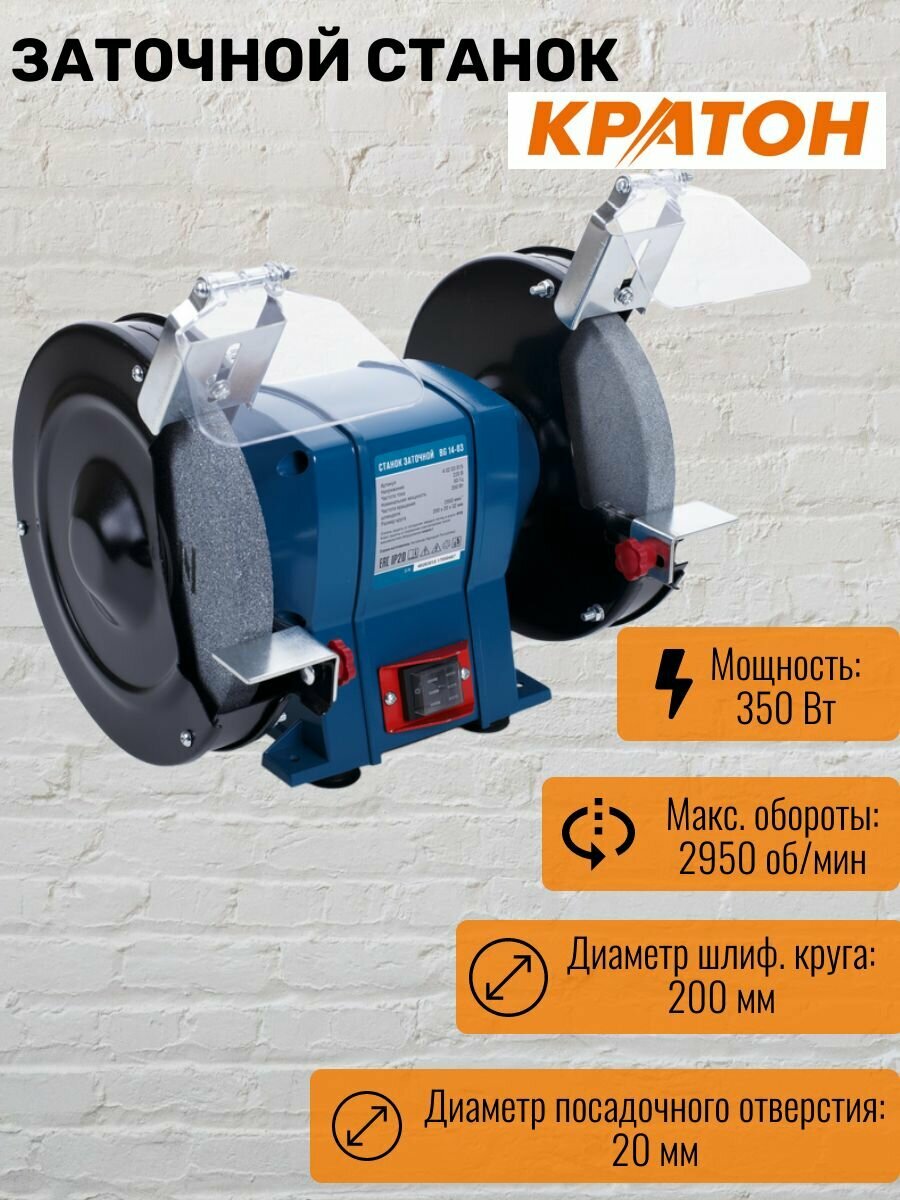 Станок заточной Кратон BG 14-03 (мощность: 350 Вт, Размеры шлифовального круга 200 32 20 мм) интересное: