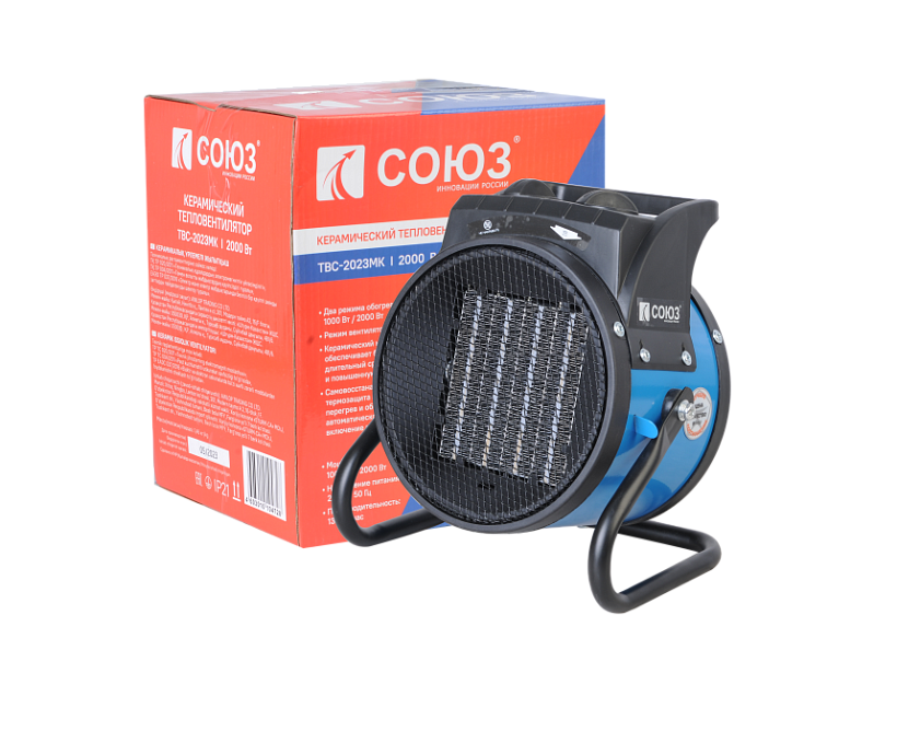 ТВС-2023МК Тепловентилятор керамический 1-2кВт, термостат, защита от перегрева, СОЮЗ