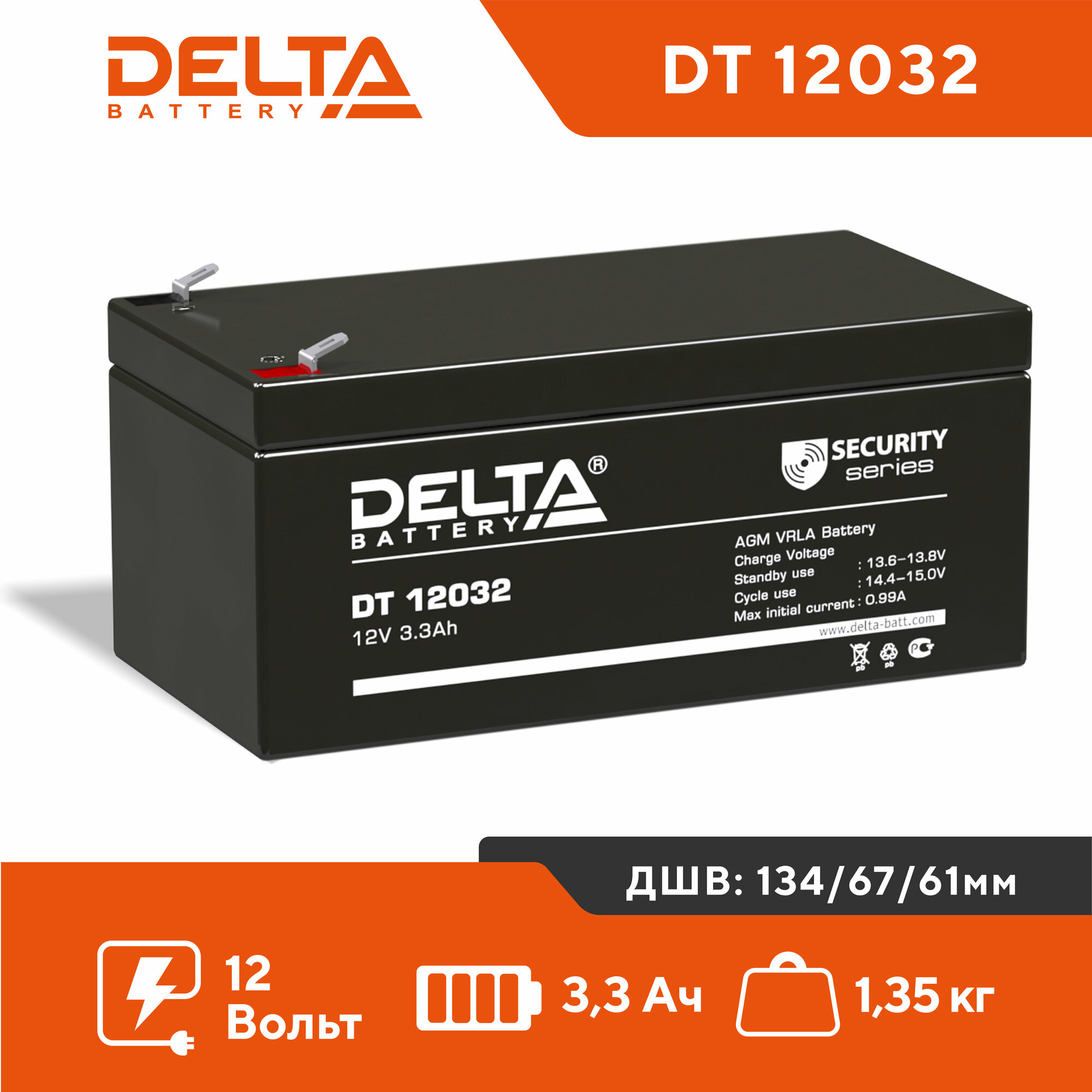 Купить Аккумулятор DELTA Battery DT 12032 12В 3.3 А·ч АКБ для ИБП, для электромобиля детского, машинки, насоса, котла, эхолота