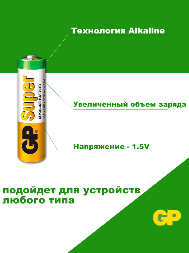 AA Батарейка GP Super Alkaline 15A LR6, 40 шт. интересное: