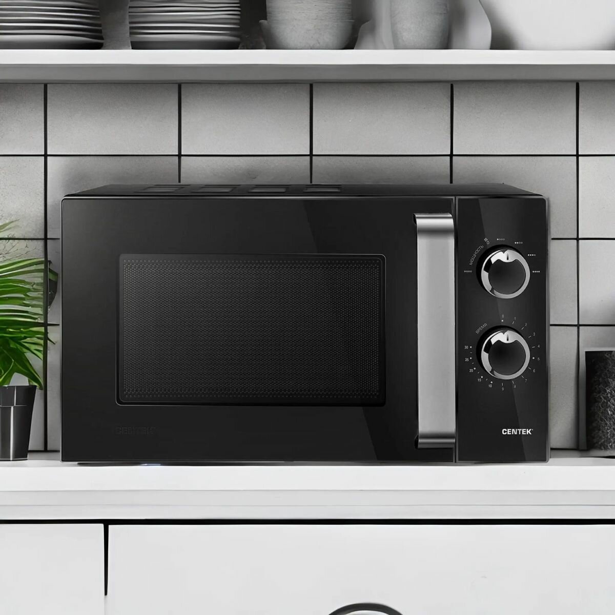 Купить Centek СВЧчерный 900W 23л 6 реж увелкамера диаметр тарелки 270 мм таймер подсветка CT-1570