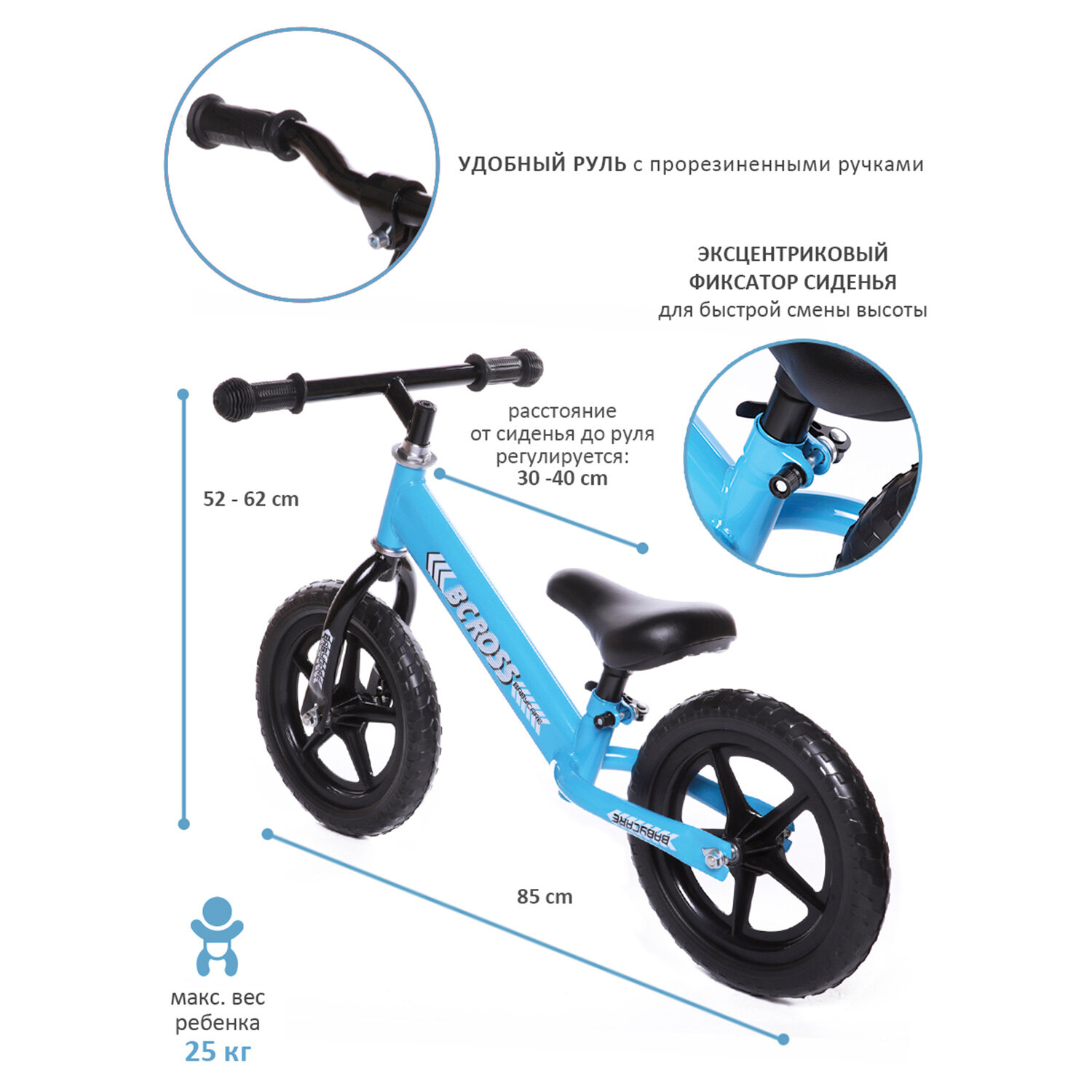 Детский беговел Babycare BCROSS, сталь, EVA, от 2 до 3 лет, синий